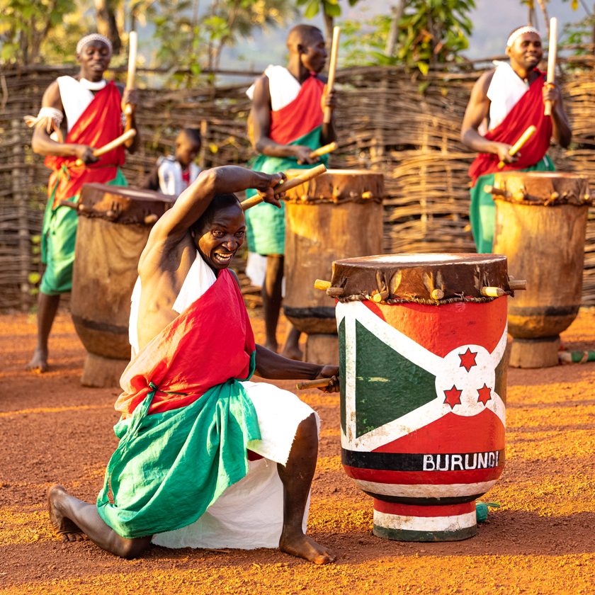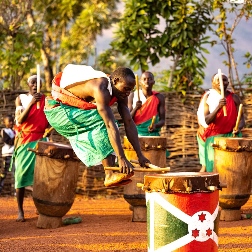 PIGMEOS. Los habitantes más antiguos de Burundi viven en las laderas cultivadas cercanas a Buyumbura, fabricando grandes ollas de barro que venden en los mercados locales. Los twa o batwa preservan gran parte de su cultura ancestral a pesar de que una parte significativa de los bosques donde vivían antaño han sido talados debido a la presión demográfica que sufre desde hace décadas el país. PASTORES TUTSI. Etnia de origen nilótico, dedicada tradicionalmente al pastoreo de las famosas vacas ankole de larga cornamenta. TAMBORES ANCESTRALES. Como objetos sagrados, los tambores eran mucho más que simples instrumentos musicales. Se usaban en rituales o en circunstancias especiales. Los principales eventos para el rey, como las coronaciones, funerales y bodas reales se anunciaban a través de los tambores. Su sonido también señalaba ciertos ritos, como cuando el mwami (rey) se levantaba en la mañana o se retiraba por la noche. En Gishora, cerca de Gitega se preservan los tambores reales y se puede disfrutar de una ceremonia tradicional real con autorización de un miembro de la realeza.
