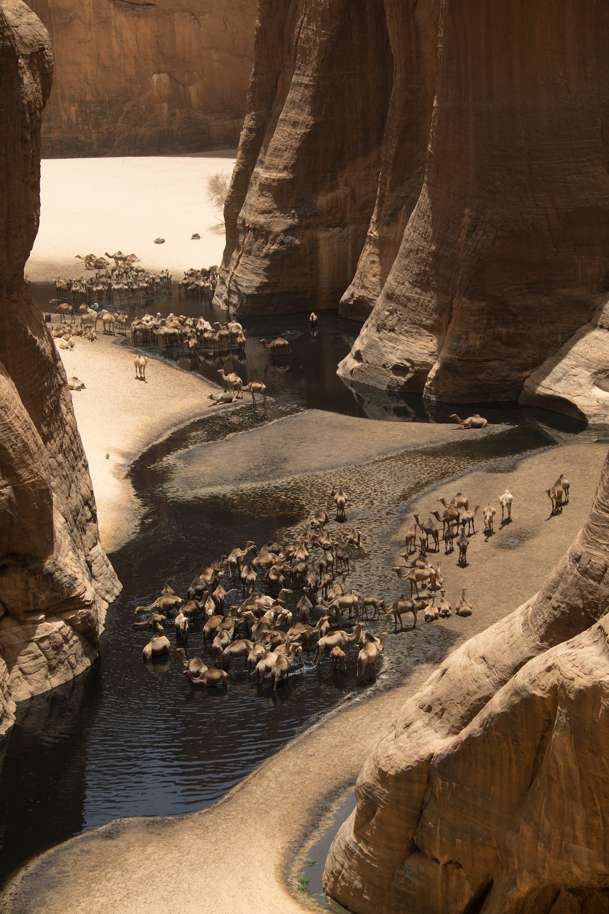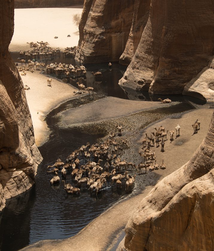 Una obra maestra de arenisca natural que abarca una extensión de 50.000 km2 de un paisaje esculpido marcado por acantilados, arcos naturales, rocas en forma de hongo y laberintos gigantes. Apodado como "Edén en el Sahara", la reserva se encuentra dentro del Macizo de Ennedi, un refugio montañoso.