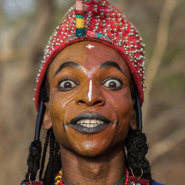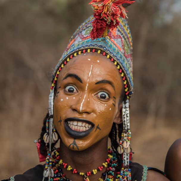 El Gerewol es una ceremonia anual de cortejo de la juventud wodaabes. Los jóvenes vestidos con elaboradas ornamentaciones y maquillados con pintura facial tradicional se reúnen en filas para bailar y cantar, compitiendo por las atenciones de las jóvenes casaderas.