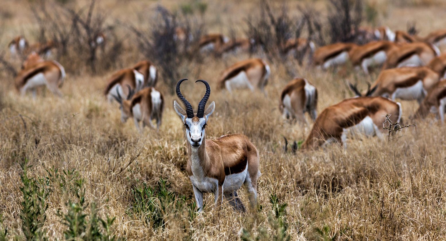 Etosha es el principal parque nacional de Namibia y uno de los lugares más visitados del país. En sus 22.000 km cuadrados, casi todos ocupados por una antigua zona lacustre de fondo plano y salino, viven 114 especies de mamíferos, entre ellos la mayor población de rinoceronte negro y de guepardos de África. La mejor época es en la estación seca: de mayo a octubre.