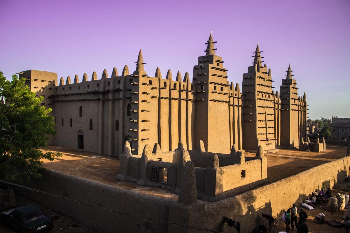 A nivel arquitectónico destaca la ciudad de Djenné, histórico enclave religioso y comercial situado en el delta del Níger y fundado en el siglo IX, con un estilo arquitectónico en base a ladrillos de adobe. Djenné alberga la mezquita de barro más grande del mundo.