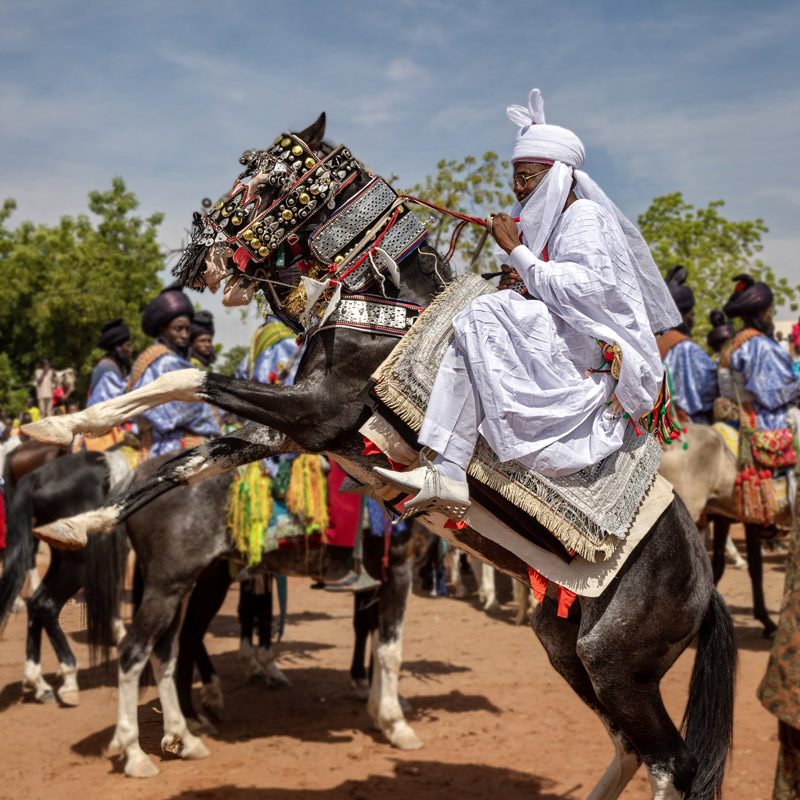 Los diferentes gobernantes hausas y fulanis (tribus dominantes en el norte de Nigeria) se reunían frente a los palacios y mezquitas, mostrando caballos y camellos ricamente decorados, y luciendo sus mejores galas. El Festival Durbar se ha convertido en una exhibición cultural de los Emiratos Hausas. Una especie de competencia entre los diferentes gobernantes tradicionales y una señal de identidad para los nigerianos del norte.