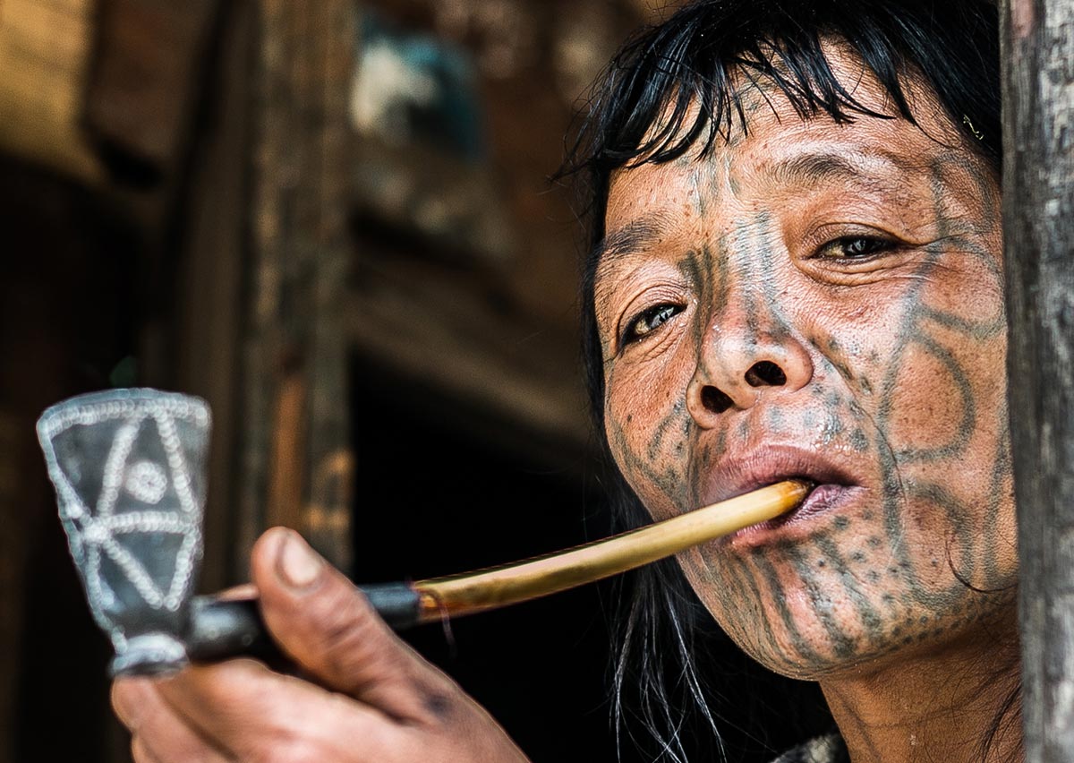 Por otro lado, el estado Chin es una de las zonas más desfavorecidas y aisladas de Myanmar. En esta región cohabitan diversos grupos étnicos que han llevado a cabo, durante siglos, la práctica de los tatuajes faciales en mujeres, hasta su prohibición en los años 60. El tatuaje era un signo de que la chica había alcanzado la madurez y estaba lista para desempeñar roles de adulta, como casarse, encargarse de la casa y criar niños. También servían para resaltar la belleza de la mujer, especialmente debido a que estos tatuajes eran adaptados para encajar y potenciar las características faciales de la portadora. Adicionalmente, eran marcadores étnicos.