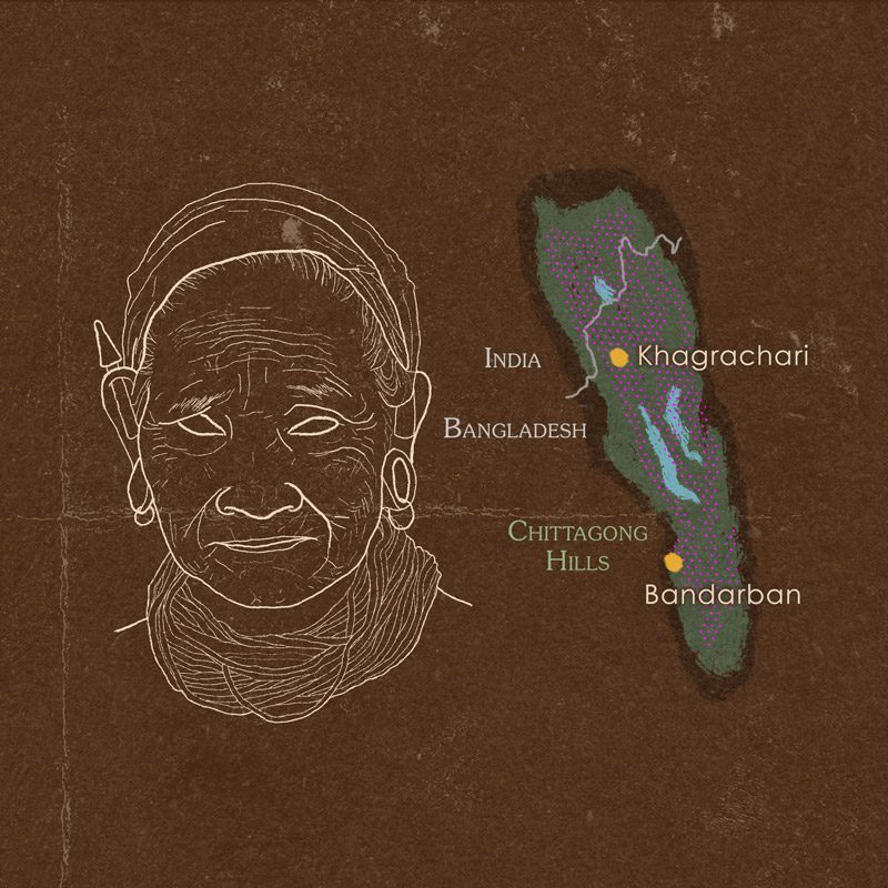 El pueblo tripura vive de la agricultura de tala y quema en la remota sierra de Chittagong, en el extremo este de Bangladesh. Viven en pequeños pueblos tanto en lo alto de las colinas, así como en algunos valles aislados.