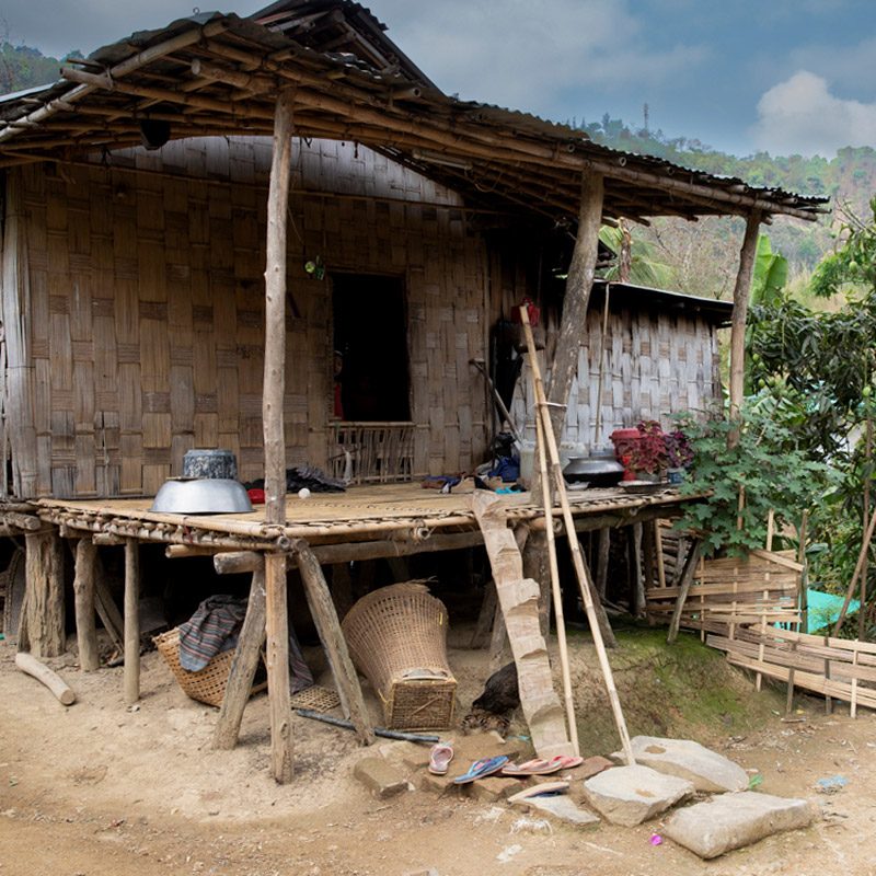 Generalmente, sus viviendas están hechas de bambú y construidas sobre una plataforma elevada. De este modo, evitan la penetración de la humedad y animales salvajes en sus hogares.