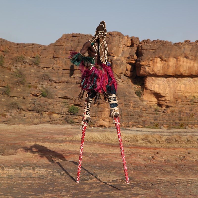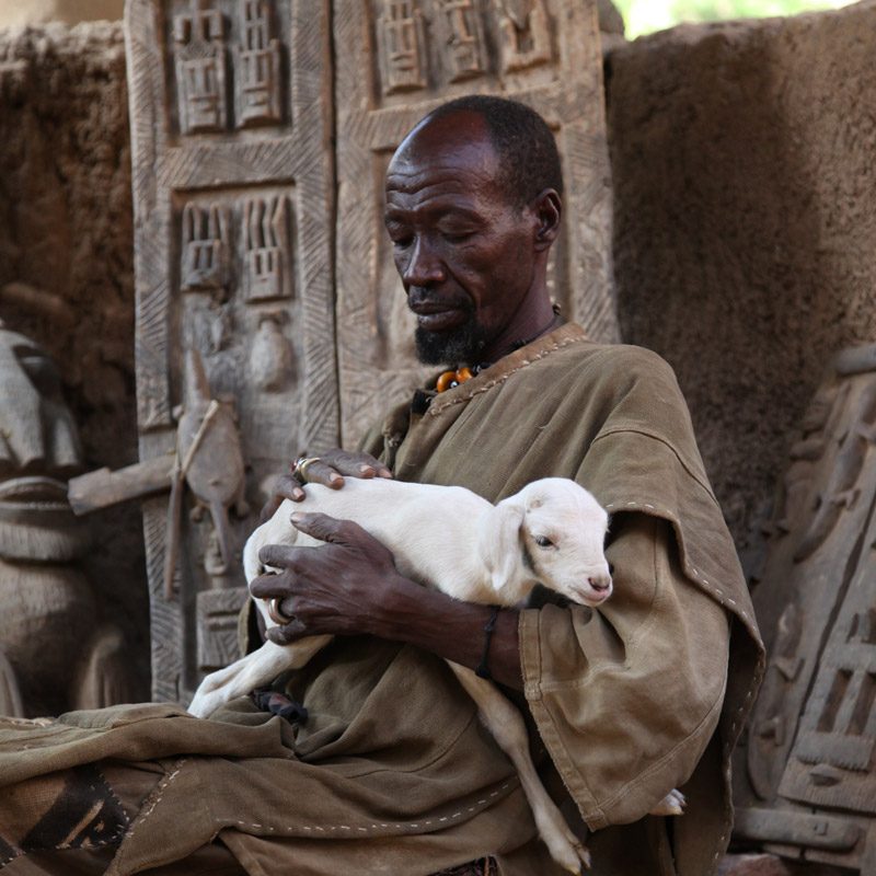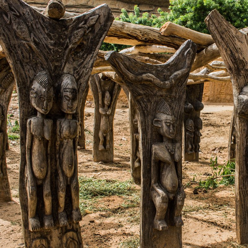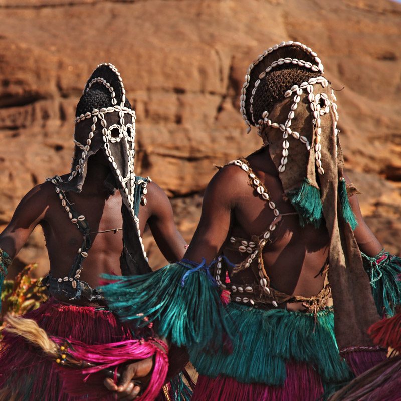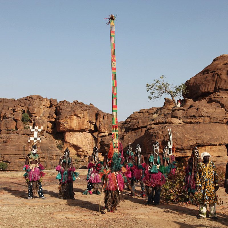 La tradición de la tribu dogón de Mali es sobre todo conocida por sus misteriosas creencias religiosas animistas (de culto a los espíritus y a la naturaleza). El arte que envuelve sus rituales está constituido por impresionantes esculturas talladas en madera.