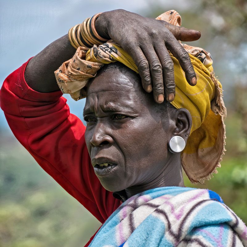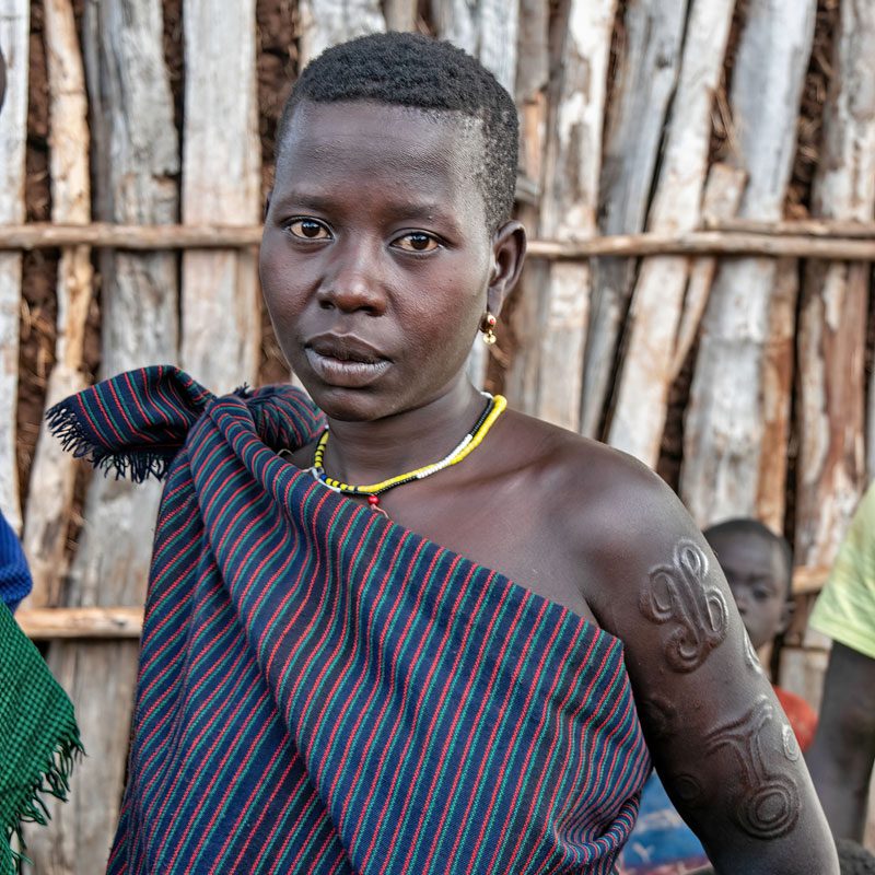 Mujer joven menit de llanura o ‘kola’ con las escarificaciones características de su generación y grupo social.