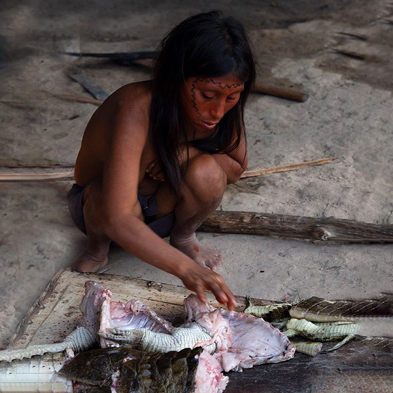 Los hombres se dedican a la caza de pecaríes, tapires, monos y un tipo de cérvidos. A menudo usan el ‘curare’ (un extracto de plantas) para envenenar a sus presas.