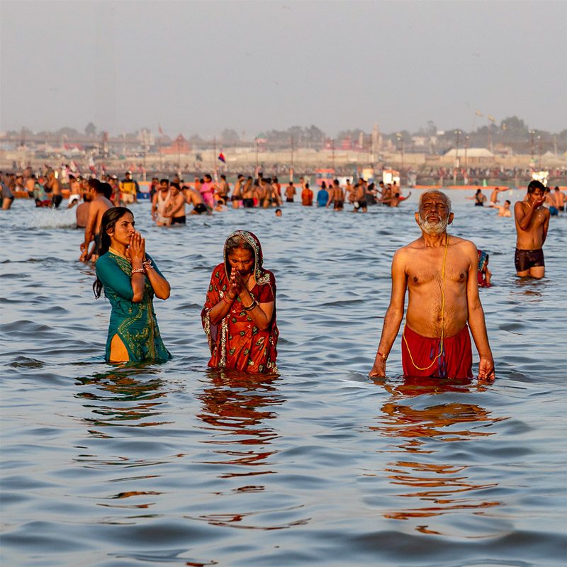 Durante este viaje al Kumbh Mela, visitaremos el Sangam (confluencia de los ríos Ganges y Yamuna) para presenciar el baño de los monjes. Los hindúes creen que sumergirse completamente en el agua en este momento los purificará a ellos y a sus antepasados durante 88 generaciones de todos sus pecados. También seremos testigos de los desfiles ceremoniales que marcan la llegada oficial de los hombres santos, montados en una variedad de medios de transporte: elefantes, caballos, camellos, automóviles, palanquines y carros, a veces tirados por hombres en una muestra de devoción. Habitualmente los sadhus Naga Baba (guerreros de Shiva) son los primeros en desfilar bajo una lluvia de pétalos, y cada fe intenta superar a las demás con el esplendor de su procesión.