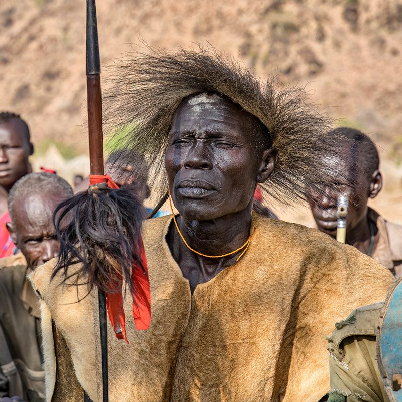 En este viaje a Uganda tendremos la oportunidad de visitar el pueblo de Nakapelimoru, considerado el más grande del este de África, donde entraremos en contacto con el pueblo jiye. Famosos por sus pueblos amurallados, cuyas viviendas están decoradas con cráneos de animales, los jiyes se organizan en sociedades fuertemente jerárquicas. El culto estético al cuerpo es una parte preponderante de la tribu jiye, según una simbología compleja, expresada en elaboradas decoraciones y llamativas escarificaciones en las el rostro y el cuerpo, indicativos del estatus y papel que cada individuo ocupa en la sociedad.