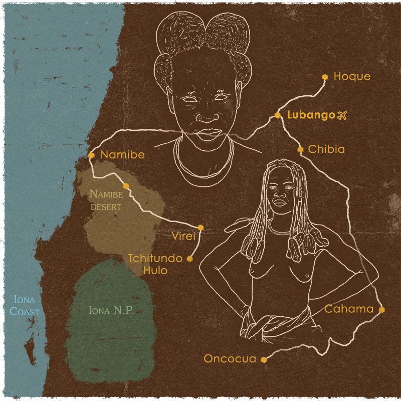 Los himbas son una etnia seminómada nativa del sur de Angola y norte de Namibia. Son los representantes del escalafón más alto en la sociedad de la región, por poseer el mayor número de cabezas de ganado. Tiene una fuerte identidad propia que se ve reflejada en la gran cantidad de ornamentos, estilos de peinados y en su recubrimiento epidérmico en base al ocre, manteca y hierbas.