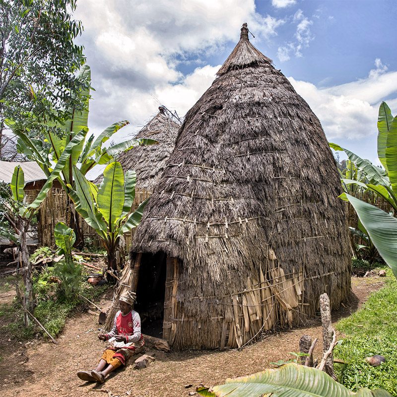 El pueblo dorze es un pequeño grupo étnico de habla omótica formado por unas 30.000 personas. Se extienden alrededor de las orillas del río Omo, hasta las tierras altas sobre el lago Abaya. La tribu dorze es conocida por sus enormes cabañas, que se asemejan a una colmena gigante. Durante este viaje antropológico a Etiopía tendremos la oportunidad de admirar estos bellos ejemplos de arquitectura vernácula. Aunque estas cabañas parecen frágiles, pueden durar hasta 60 años. Las cabañas de la tribu dorze presentan una especie de "nariz" en su lado sur, que sirve como sala de recepción. En el centro de la cabaña suele haber un fuego para cocinar, rodeado por bancos bajos para sentarse alrededor.
