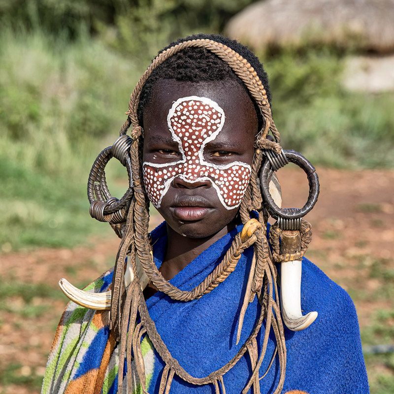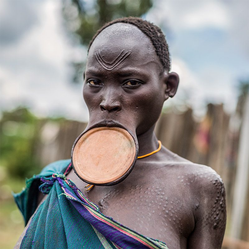En este viaje antropológico a Etiopía tendremos la oportunidad de conocer a la mítica tribu mursi, famosos por la tradición de las mujeres de llevar el plato labial. La visita a un poblado mursi en el Parque Nacional Mago será una experiencia única. La característica principal de la estética del pueblo mursi es el disco de arcilla que llevan colocado en un corte en el labio inferior. Pero las pinturas corporales y las escarificaciones de los mursis también son extraordinarias. Los mursis creen en una fuerza mayor llamada Tumwi que reside en el cielo, aunque en ocasiones se manifiesta en forma de arco iris o pájaro. En las comunidades mursis destacan dos figuras: los sacerdotes kômorus, responsables del bienestar del grupo, que actúan como médiums con su dios; y los jalabas, que tienen un papel político.