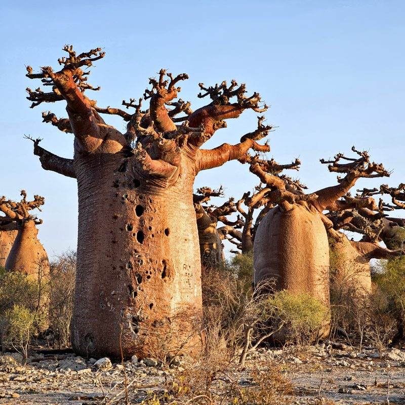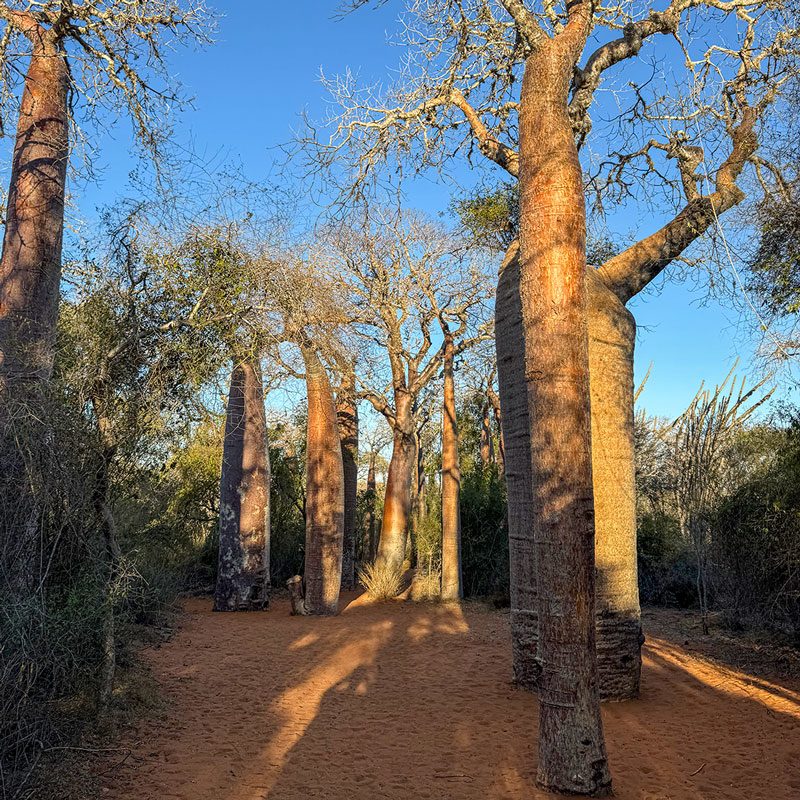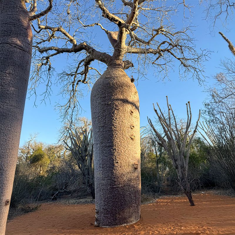 Los baobabs son las plantas que quizás más representan a Madagascar. Tendremos la oportunidad de observar baobabs gigantes, así como los baobabs de botella, una especie endémica que caracteriza al bosque espinoso del parque de Reniala. Se trata de un denso bosque que crece sobre la arena del desierto.