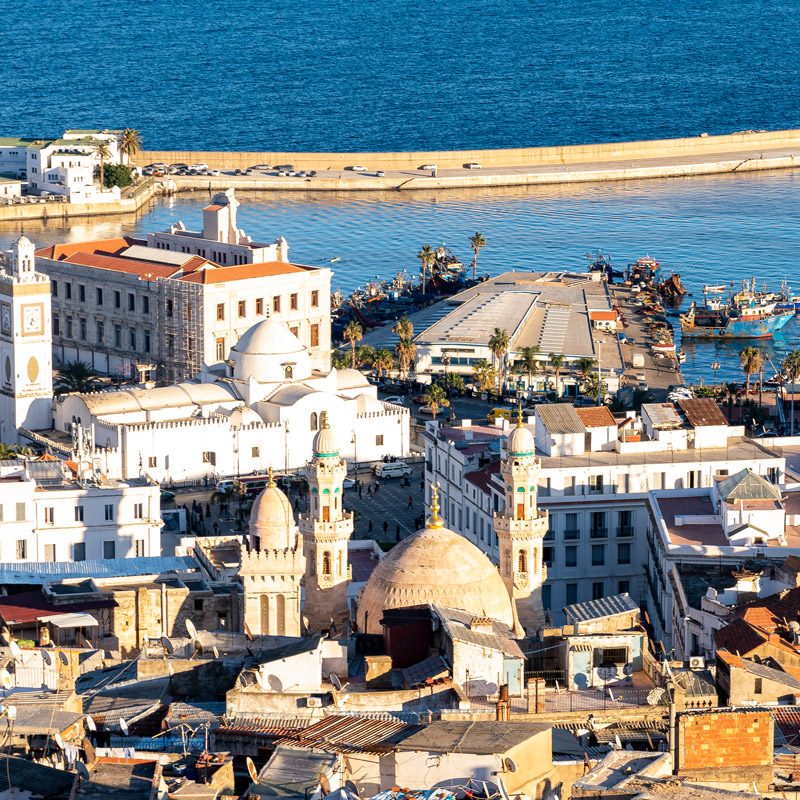 Argel (del árabe El Djezair), declarada Patrimonio de la Humanidad por la UNESCO, se caracteriza por sus casas encaladas, con vistas al Mediterráneo y rodeada de verdes y fértiles colinas. Esta ciudad histórica fue primero la más poderosa de las bases corsarias de Berbería en la época del pirata Barbarroja. Luego fue dominada por los otomanos durante tres siglos y, más tarde, un centro residencial durante el período colonial francés. Durante este viaje a Argelia, visitaremos el Monumento a los Mártires (Makam Echaid) y el Jardín d’Essai, un jardín público creado por los franceses en 1832 como invernadero, donde experimentaron con el cultivo de plantas y flores de todas las colonias. Pasearemos por la medina de Argel, construida sobre las ruinas del antiguo Icosio. Caminaremos por las laberínticas callejuelas de la kasbah, la mayoría de las cuales datan del siglo XVI, y admiraremos las numerosas mezquitas (exteriores) y residencias históricas, conocidas como dar (exterior). Continuaremos por el paseo marítimo, donde la huella arquitectónica del período francés es claramente visible, con grandes bulevares arbolados, soportales y elegantes edificios.