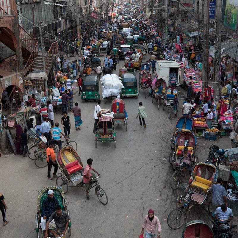 Entrar por Dhaka ya es en sí una experiencia potente y que vale la pena vivir. Dispondremos de dos días enteros para visitar esta macro-urbe asiática y acercarnos un poco más a la vida diaria de los locales. Visitaremos los mercados más importantes de Dhaka: Kawran Bazar, Amin Bazar, Shakhari Bazar, Islampur Bazar y Chawk. Veremos a los trabajadores de la fábrica de ladrillos cargando y descargando barcos. Pasearemos por barrios marginales, por Old Dhaka y por el muelle de Sadarghat. Si teneemos tiempo realizaremos un circuito en rickshaw por la capital bengalí.