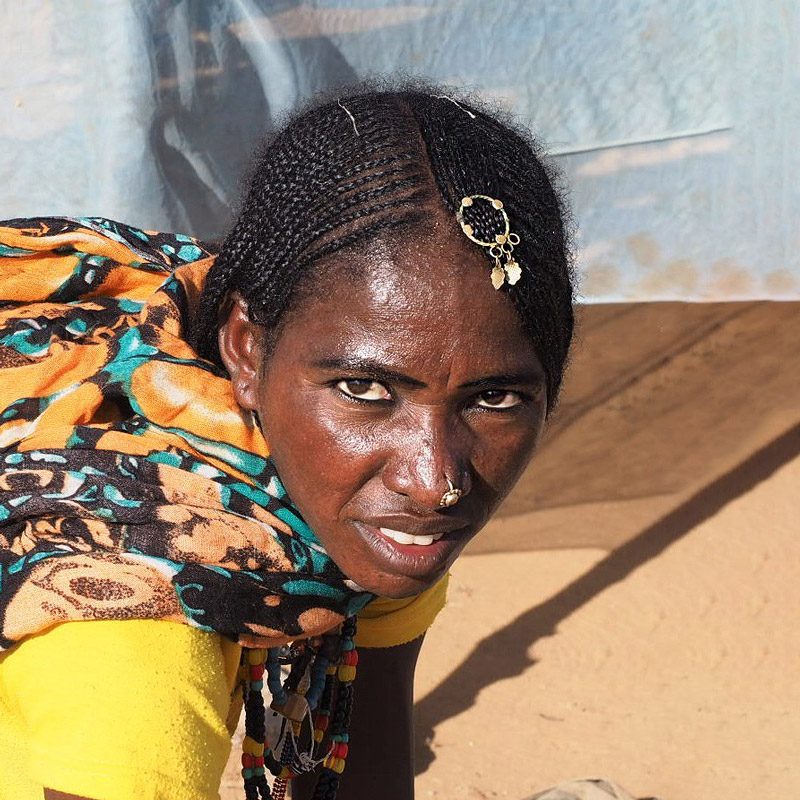 Nos encontraremos con el pueblo tribal de bilen, una minoría de pastores. Las mujeres adornan su cabello con joyas de oro y, a veces, perforan sus narices con grandes anillos.