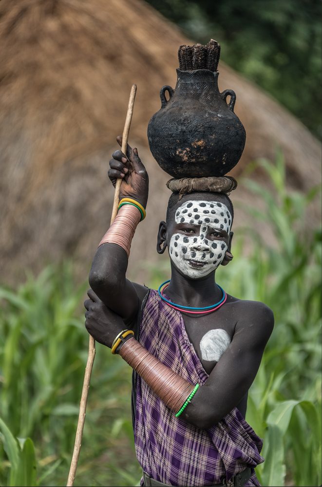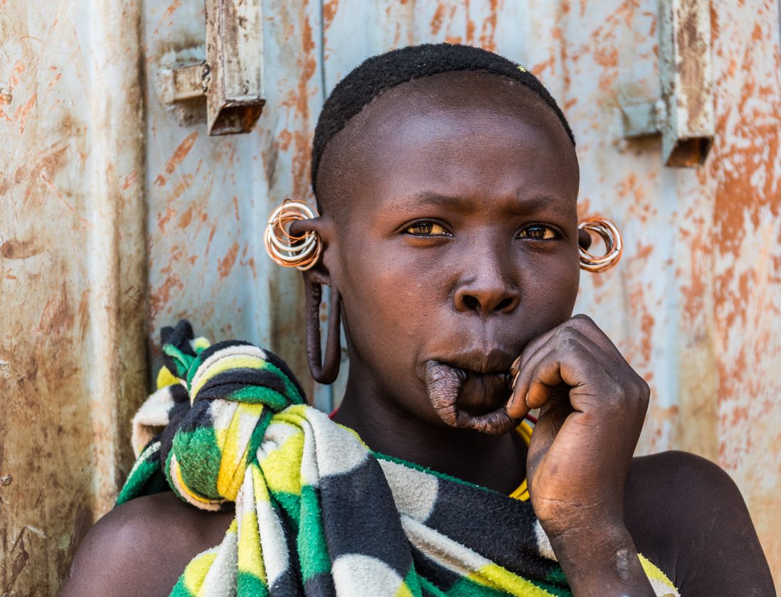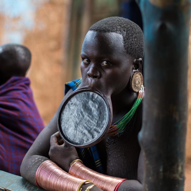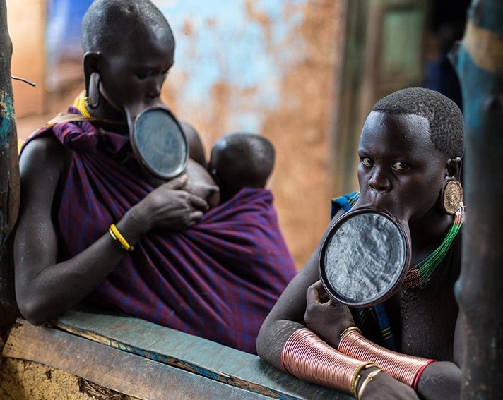 Este pueblo semi-nómada habita en las selvas del suroeste de Etiopía, en la margen más virgen del mítico río Omo y junto a la frontera con Sudán del Sur. La principal actividad de los Surma es el pastoreo y, en menor medida, la agricultura. Elaboran una curiosa bebida alcohólica, semejante a la cerveza, a base de sorgo fermentado. Mantienen viva mucha de su cultura tradicional. La etnia Surma tiene, tanto hombres como mujeres, una arraigada tradición por los adornos corporales y por la ausencia de ropa, una característica que antaño tuvo un rasgo intimidatorio hacia sus enemigos. Veremos la fascinante estética de las dilataciones labiales y lobulares: esos majestuosos platos de hasta 40 centímetros de diámetro. Además, seremos testigos de cómo adornan su cuerpo por medio de escarificaciones, pinturas y llamativos brazaletes metálicos.