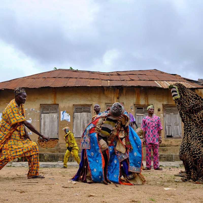 Presenciaremos los bailes y rituales para evocar a los egungun, momento en el que el espíritu de los ancestros se hace presente con todo su colorido, al ritmo de los vibrantes tambores africanos.
