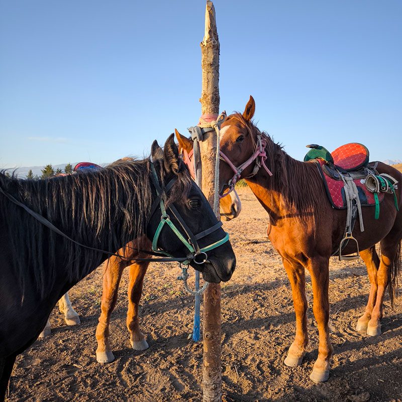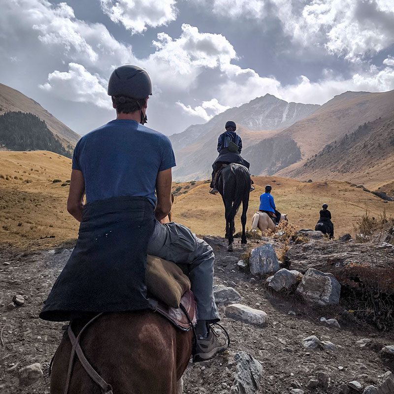 Acompañaremos a los pastores en una jornada a caballo por las montañas. Durante el recorrido, buscaremos yaks, caballos y vacas en los pastos más elevados. Desde las alturas, disfrutaremos de vistas a glaciares, bosques alpinos y grandes valles. Además, participaremos en una actividad cotidiana esencial para la economía nómada.