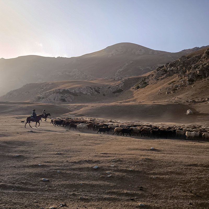Seguidamente, entraremos en los jailoo, los pastos de altura donde las familias nómadas pasan el verano. Aquí conviviremos con pastores kirguises y dormiremos en yurtas tradicionales. Durante esta etapa del viaje etnográfico a Kirguistán, compartiremos tareas cotidianas. Observaremos el cuidado del ganado y probaremos productos elaborados en la montaña. De este modo, comprenderemos la profundidad de la cultura pastoril.