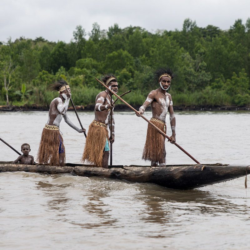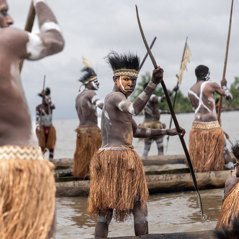 Durante este viaje etnográfico a Papúa Occidental, compartiremos un día entero repleto de emociones y momentos vibrantes junto a una comunidad asmat. Comenzaremos viendo una espectacular demostración de la llegada que antiguamente realizaban los guerreros asmat cuando volvían de la batalla. Contemplaremos cómo los combatientes regresaban gloriosos y vencedores, subidos en barcas y ataviados con los trajes y pinturas de guerra. Una vez que los guerreros llegaban a tierra firme, eran recibidos por el resto de la comunidad. Veremos cómo mujeres, ancianos y niños les daban la bienvenida a través de interminables danzas en las que mostraban su gratitud por la valentía mostrada en el campo de batalla. Tras este impresionante momento, que nos dejará los pelos de punta, podremos presenciar la ceremonia del levantamiento del tótem sagrado en honor a los ancestros. Durante este viaje etnográfico a Papúa Occidental, tendremos la oportunidad de reunirnos con los hombres de la comunidad para entablar conversación con ellos y preguntarles acerca de lo vivido durante el día de hoy y sobre su cultura. Dedicaremos una parte del día a caminar por este pequeño pueblo, visitar la tienda de artesanía y hacer algunas compras, si lo deseamos. También visitaremos su museo, un edificio que alberga mucha de la historia y cultura de esta comunidad. Aquí veremos piezas expuestas que nos sorprenderán, pero no queremos desvelaros nada para que seáis vosotros mismos los que os sorprendáis una vez nos encontremos allí.