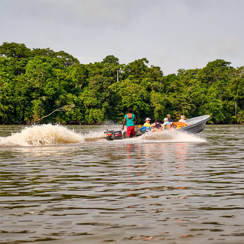 Luego visitaremos los proyectos de cooperación de Gabon Untouched en Doussala y regresaremos hacia Tchibanga. Desde allí viajaremos hasta Setté Cama combinando carretera y navegación. Este enclave se encuentra entre la laguna Ndougopu y el Parque Nacional Loango. En Setté Cama realizaremos un safari nocturno por la laguna, un entorno ideal para observar fauna en silencio bajo el cielo africano. Aquí sentiremos la fuerza salvaje de la costa atlántica.