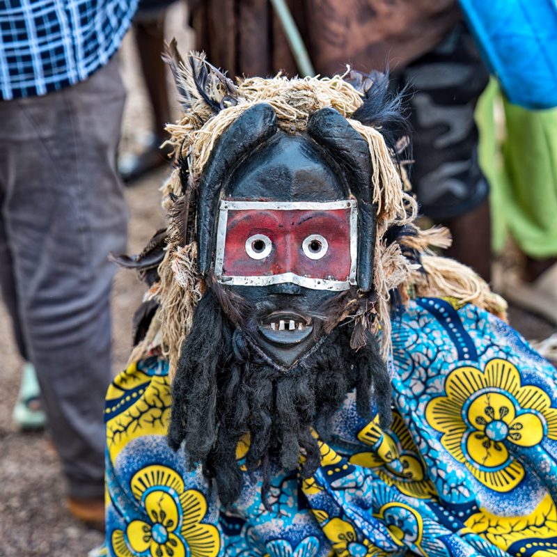 También cruzaremos puentes de lianas ancestrales en territorio Guerzé. Si las circunstancias lo permiten, mantendremos una audiencia con el rey local. Finalmente asistiremos a una mascarada Guerzé, expresión artística y espiritual de gran fuerza escénica.