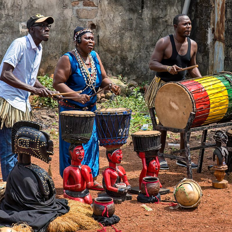 Conoceremos a las autoridades tradicionales y profundizaremos en la identidad Baga. En particular, descubriremos la máscara Nimba, símbolo nacional de Guinea. Su cabeza protuberante y los patrones geométricos tallados evocan fertilidad y abundancia. Asimismo, sus formas representan la maternidad y la mujer madura dentro de la comunidad. Además, visitaremos el Museo Nacional para contextualizar estas tradiciones dentro del patrimonio cultural guineano. Por otra parte, asistiremos a un proyecto social de acróbatas que trabaja con jóvenes en situación vulnerable.