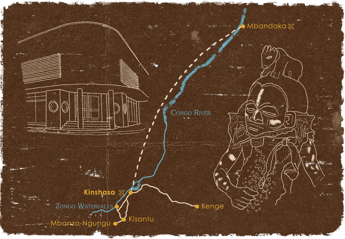 Kinshasa es una megaciudad africana con sus propios elementos únicos; los 'sapeurs' (sociedad de animadores y gente elegante), la lucha vudú o lucha fetichista, la música Suku (salsa congoleña), y el museo nacional. También visitaremos la ciudad de Kisantu con su bonita arquitectura colonial y la antigua estación de tren de Mbanza Ngungu.