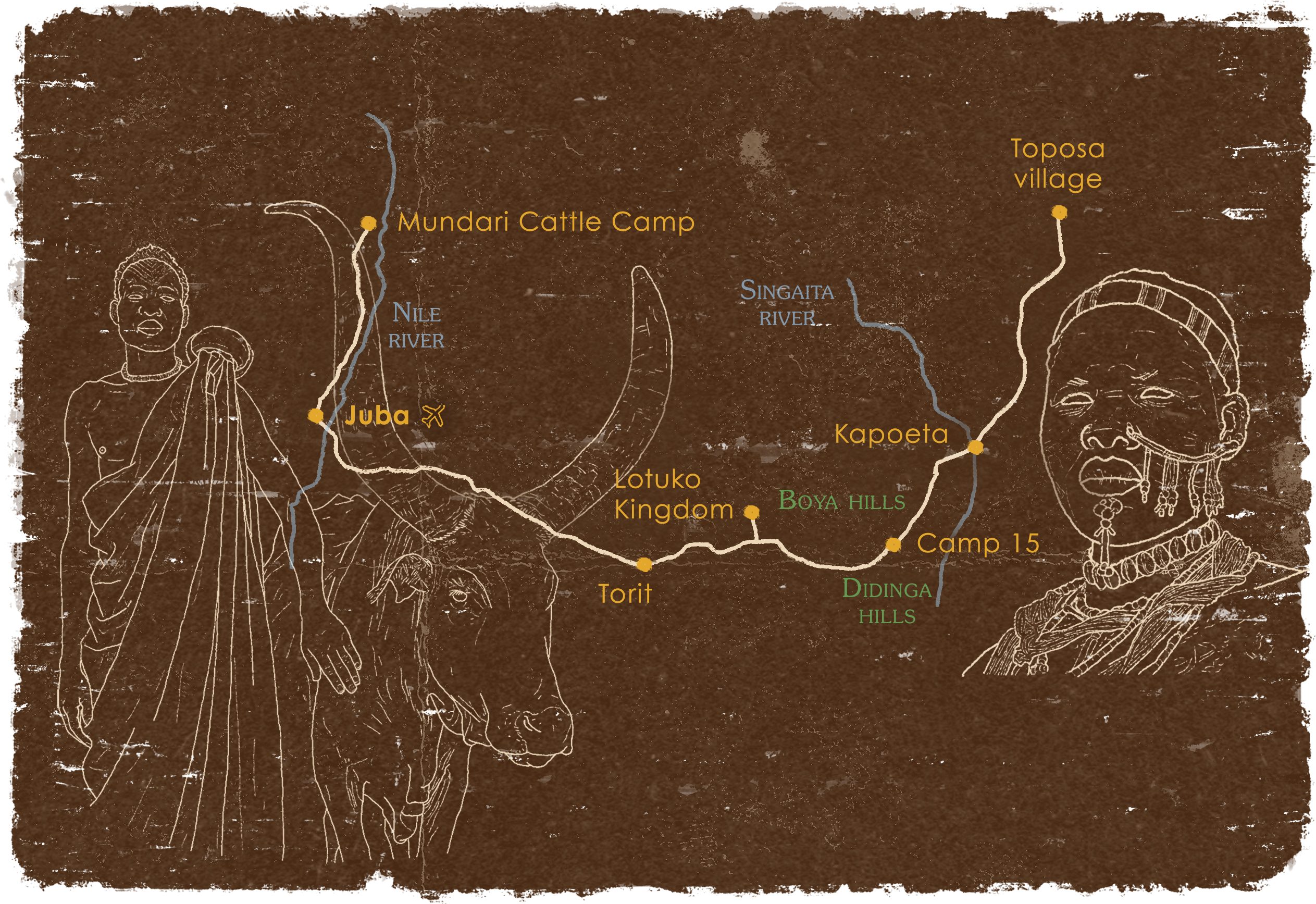 En Sudán del Sur encontraremos las culturas más vírgenes de todo el este de África. Allí, los icónicos Dinka y Mundari aún viven en sus campamentos de ganado y las increíbles mujeres Larim continúan escarificando sus cuerpos y rostros.
