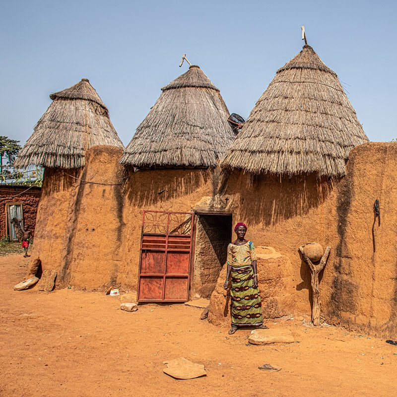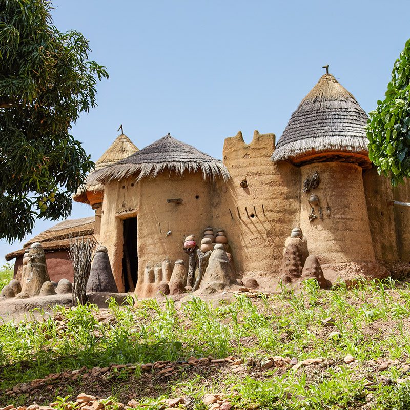 En este viaje a Benín tendremos la oportunidad de visitar a una comunidad ditamarí o somba. Son los llamados ‘artistas del adobe’, ya que construyen bellas estructuras de dos plantas para alojar al ganado en la parte de abajo y a la familia en la parte de arriba. Los jóvenes solteros suelen vivir en una especie de almenas en la terraza de esta especie de mini-castillos de barro. Exploraremos varias ‘tatas’ o casas fortificadas alrededor de Boukombé. Los ditamaríes más tradicionales todavía se escarifican el pecho y la cara con un cuchillo especial durante la estación seca.