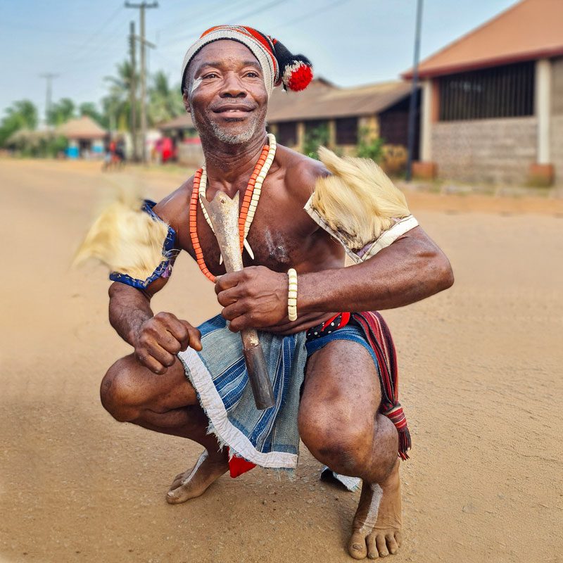 Durante este viaje tribal a Cross River (Nigeria) exploraremos la parte norte de la tierra Igbo. Conduciremos hacia el norte, hacia el pueblo de Nuskka. Parte de la plaza del pueblo muestra monumentos históricos importantes para el pueblo Igbo, como la Casa Omaba y varios santuarios, como la “pirámide” de Odegwoo. Nos encontraremos con los ancianos y aprenderemos sobre la antigua tradición de fundición de hierro de los herreros Igbo.