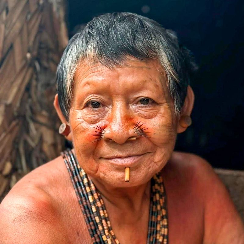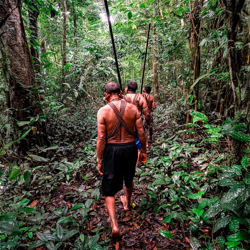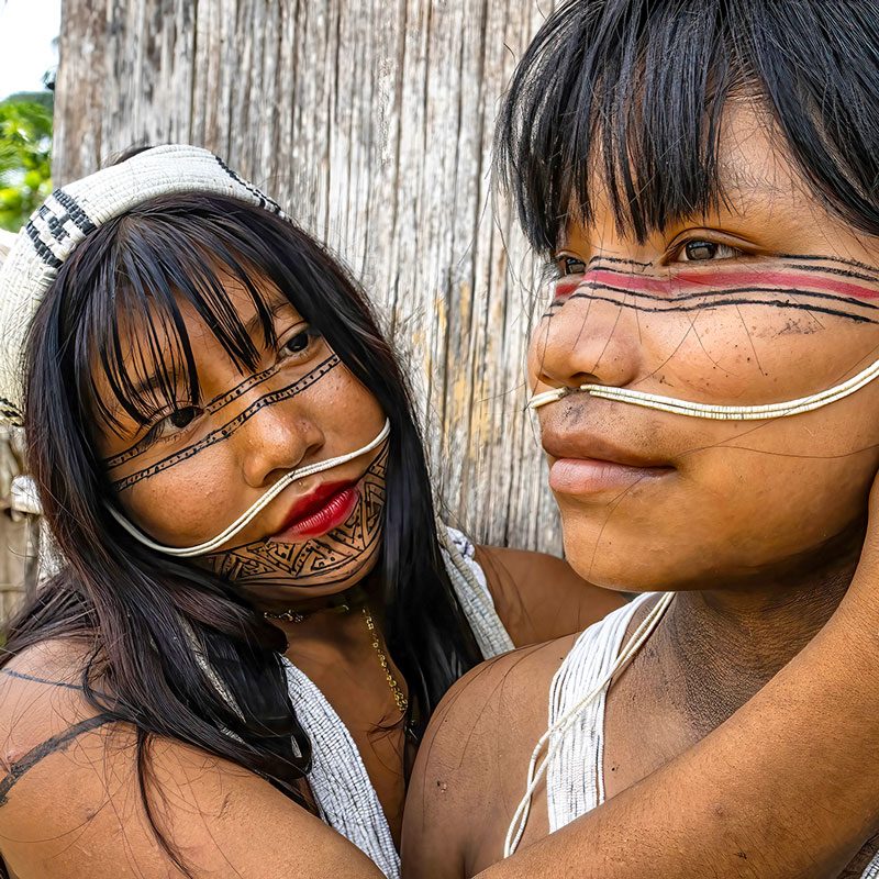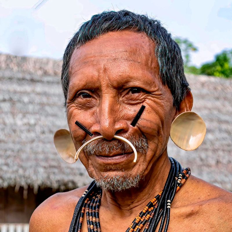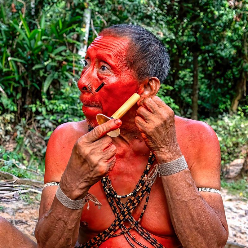 Durante este viaje tribal al norte de Brasil nos adentraremos en la selva para visitar a los matis, una de las tribus más singulares de la Amazonia. Caminaremos por senderos selváticos hasta llegar a su campamento. Allí observaremos sus tatuajes faciales y perforaciones, y entenderemos la profundidad de sus tradiciones. Nos sentaremos junto a su fogata, presenciaremos su “prueba de valentía” y acamparemos cerca de sus chozas hechas con hojas de palma. Al amanecer participaremos en una expedición de recolección y aprenderemos el uso de cada planta, raíz o fruto.