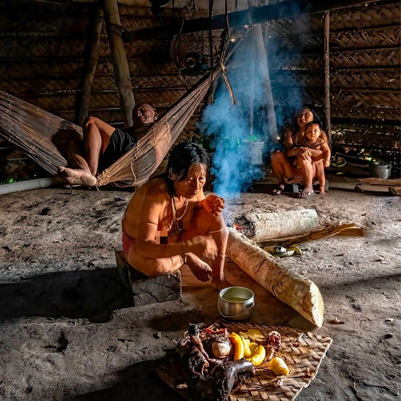 En nuestro viaje tribal al norte de Brasil también conoceremos al pueblo canamari. Admiraremos su destreza en el trabajo con plumas, su cestería y su cerámica. Compartiremos un almuerzo tipo picnic con ellos en plena selva. Más tarde, asistiremos a una ceremonia cristiana en la comunidad cabocla de Sao Rafael. Observaremos una misa, un bautizo o incluso una boda, comprendiendo la fusión entre tradición indígena y devoción cristiana.